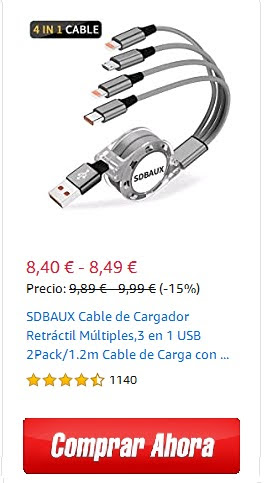 Cargador universal de carga rápida por conexión usb para celulares y tablets, tipo C de 3.1 A